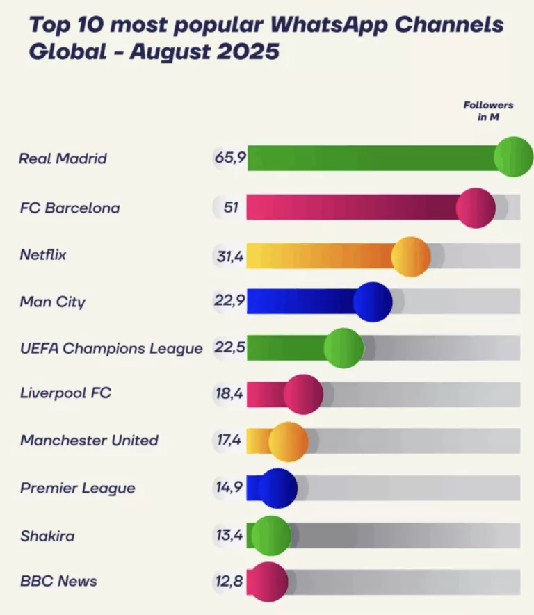Premier classement mondial des chaînes WhatsApp – Août 2025 (by Messaging Me)