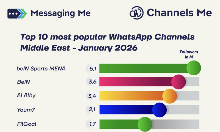 Discover the most followed WhatsApp Channels in the Middle East in January 2026. Sports, media and entertainment dominate the ranking.